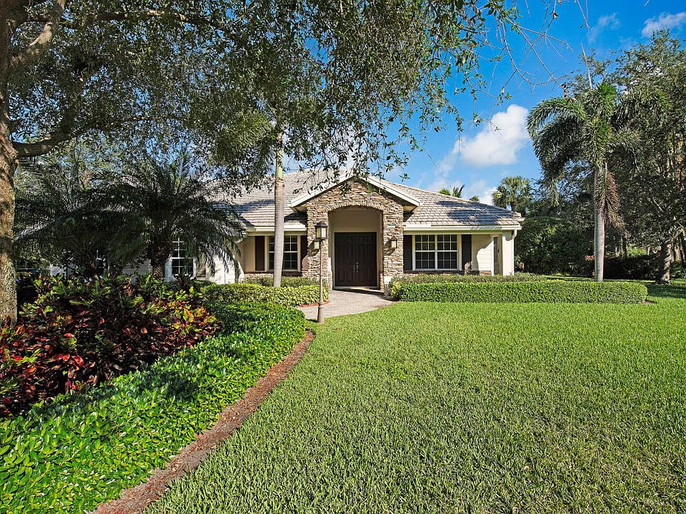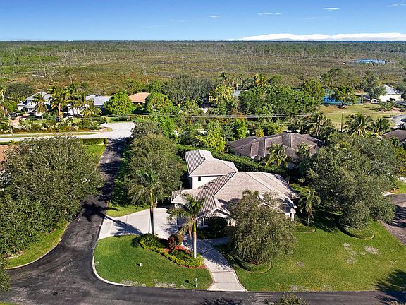 Immaculate 2-story 2006 CBS home on a beautifully landscaped .37 acre, private, corner lot. A circular driveway & stone architecture welcome you - impact glass for safety & security. Private backyard with heated, salt-system pool, spa, covered patio. MBR and 1 GBR are downstairs plus office. Chef's kitchen - granite, center island, cafe area, newer SS appliances - tons of storage. Family room overlooks pool & garden. Separate dining & living rooms. All hardwood floors downstairs and on the stairs. Upstairs 3 BR + Flex room. 3 new energy-eff, HVAC systems. Cat-5 in whole house. River Ridge: a waterfront manned-gated community, 2 tennis courts, playground, 2 lakes for light recreational use. North Fork of Loxahatchee River to the west & Jonathan Dickinson State Park to the north. Paradise!