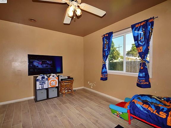 San Lorenzo schools. HUGE living room and new beautiful floors throughout this charming home. Light and Bright Cozy Kitchen adjacent to dining room, gas stove, dual pane windows, updated kitchen, new counter tops, newer heater, ceiling fans, shed for lots storage, big backyard with lots of privacy, new toilet. Great location, close to 880, shopping and schools. Only minutes to BART, entertainment and restaurants.