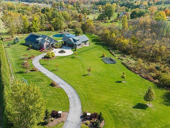Beautiful custom built ranch designed by a local architect, this home truly has it all. Tired of the cookie cutter floor plans, then look no further. You won't find another home like this anywhere! The home sits on 3 peaceful and private acres complete with a pond featuring a beautiful hardscape waterfall. The welcoming foyer opens up into the great room with soaring vaulted ceilings and an entertainers kitchen. The kitchen has an abundance of custom, cherry cabinets, loads of space on the quartz counters and island, and high end stainless steel appliances. The oversized butlers pantry stays hidden behind a door. The focal point of the living room is the floor to ceiling stone fireplace and large windows welcoming in plenty of light. Upstairs hosts a spacious loft with multiple possible uses and a large walk in attic. While your upstairs take a look down the hallway and take in the view. On the main floor sits the three bedrooms, two of which share a Jack and Jill bathroom. The master suite, truly is sweet, with plenty of space, vaulted ceilings, a private deck off the back of the house with an amazing view of the pond a waterfall (Just sit there and take in the tranquil sounds from the water moving) The master bathroom has an oversized jetted garden tub, large glassed in standup shower, double vanities and a spacious walk in closet. The amenities in this home keep going and going, with city sewer, geothermal heating and cooling, radiant hydronic in floor heating (in home, and garage), water softener, water filtration, security system, cameras, engineered hardwood floors, tile, stone, this home really does have everything you could ever want. The covered outdoor living area with stamped concrete and brick fireplace will bring all of your party ideas to life. The oversized garage with in floor radiant heat will melt the snow off your car in the winter time! to the backside of the garage is a huge workshop area sure to provide the space needed for your hobbies. Upstairs from the garage there is another heated and cooled living space, the sky is the limit with this one. Nestled in off the main road this one of a kind home is in Leo school district and only a short drive to I-69, Dupont Road, Parkview Hospital, Leo and Auburn.