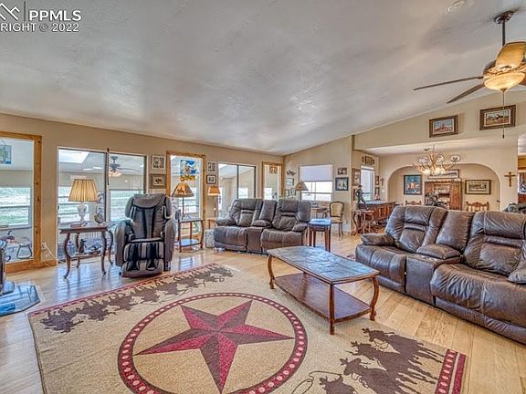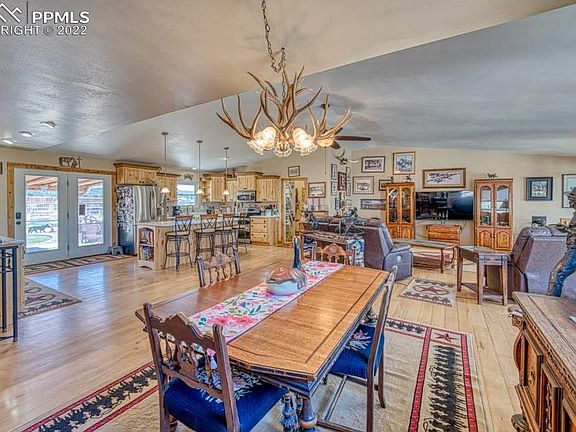 This is the ultimate property for mult family , The Ranch is 40 acres that backs to over 3,000 acres of BLM & State land!!! This Ranch is located in Penrose, and sits back off of Highway 115, with amazing views of the Sangre De Cristo Mountains, the Wet Mountains, and the Collegiate Peaks! The main home has over 4400 square feet of open main level living, with a fully finished basement. There are 5 bedrooms and 4 bathrooms, and the main level is an open concept with the living room that opens onto the sunroom. You will love the great space shared between the rustic kitchen with center island, wet bar, wood floors, and alder cabinetry, and the living room with cathedral ceilings & gas stove, and the dining room that is accented by an Antler Chandelier. There is a fun sunroom perfect for that morning coffee and a peaceful covered patio with a large pond and waterfall. The master has dual closets AND bathrooms and overlooks the large pond. There is a second home on this property with nearly 2000 sq ft, with 3 bedrooms, 2 baths and the home has been updated throughout. The 8-stall barn with tackroom, feedroom, and runs, hay storage and ALL of this on 40 acres of your own private oasis, where you can ride right out your back gate to the mountains behind. There is also a 36'x36' workshop with electric & a commercial air compressor. The solar panels are included and are free & clear. still under warranty. This property is in a conservation easement, so it can never be developed, preserving your peace and tranquillity. Power lines do cross the property.