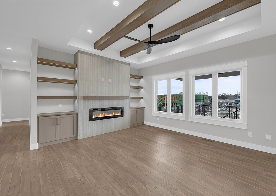 5 bedrooms & 3 full bathrooms, each with dual vanities, additional half bathroom, this home provides ample space. The main floor has solid 3/4-inch hardwood floors, electric fireplace. The basement features a wet bar and a second electric fireplace, perfect for entertaining, a storm shelter and a dedicated exercise room. The 3-stall garage includes a 34-foot deep third stall, ideal for larger vehicle or boat and is equipped with an electric car charger.