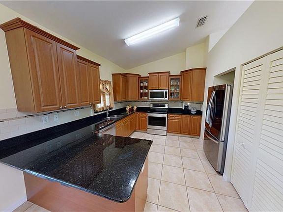 Impeccably maintained. Tastefully updated. $30,000 in upgrades. BRAND NEW A/C SYSTEM 2020! SEE OUR 3D VIRTUAL TOUR! Outside you will find 9 foot concrete block walls (taller than normal), an 8 foot impact rated garage door (taller than normal), a fresh paint job, a large under roof lanai, a large back yard with privacy and room for a pool, decorative impact glass double entry door, and excellent curb appeal. Inside you will find an open floor plan with 3 spacious bedrooms + den, 2 1/2 bathrooms, a vaulted ceiling in the main living area, and so much more. The kitchen is impressive, featuring all new high end stainless steel appliances, pantry, and really nice cabinetry and counter tops. All bathrooms have been updated with new showers, faucets, and chair height no-clog toilets. All bedrooms have been updated with new premium carpet and padding. Additional Updates: Fresh paint throughout, all LED lighting with all new light fixtures, advanced seamless custom gutters with french drain (water drains into ground and out at the property perimeter), high end oversized washer and dryer, wifi garage door opener which is belt driven (quiet), Epoxy garage + lanai floor. You'll love it!