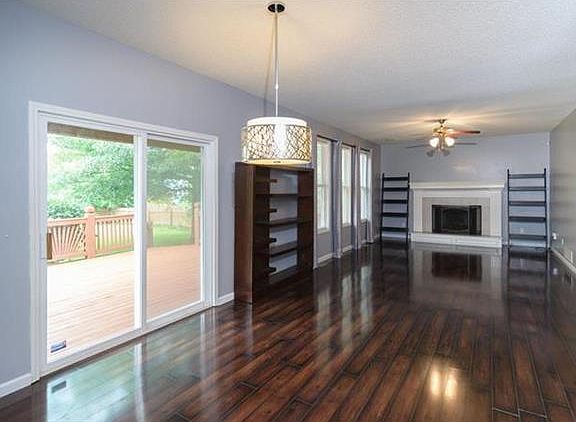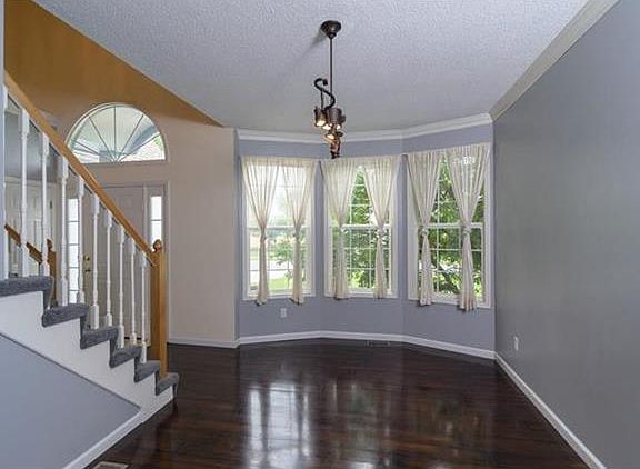 Nice two story in great location in cul-de-sac. Beautiful hardwoods on the main level. Fireplace in living room, wall of windows that look out to partially covered deck. Eat-in kitchen and formal dining room that could be used as main floor ofc. Utility on main level and half bath with featured vessel sink. Upstairs has nice master suite with huge walk-in closet. Additional 3 secondary bedrooms and hall bath. Basement is unfinished and waiting for your special touches. Fenced in yard.