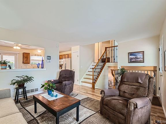 NEW PRICE IMPROVEMENT! Welcome to this Medema-built 1981 "starter" or "downsizer" tri-level. No HOA! Use your imagination to make this your own home * Home includes FULLY PAID OFF SOLAR PANELS offering significant energy savings, lower utility bills, and increased property value with no additional costs * This home has been updated and boasts lots of natural light * Neutral colors throughout * Newer front door, newer windows, newer leaf-guard system * Oak staircase railing with wrought-iron balisters * Eat-in kitchen features newer Corian countertops, oak cabinetry, and a pantry with built-in spice racks * Updated full bathroom at top of stairs * Large primary bedroom has walk-in closet * Secondary bedroom features a walk-in closet * Lower level incorporates a family room, 1/2 bath/laundry room combination, and an office * Office can easily be converted to a third bedroom, and a shower could be added to the lower half bath * Front and back yards are xeriscaped * Enjoy sitting on the 50'L x 16'W partially covered concrete back patio overlooking the beautiful vegetable garden * Some plants include rose bushes, butterfly bush, and Russian Sage * A few garden delights include raspberries, rhubarb, asparagus * 12'L x 8'W shed is large enough to store yard tools/equipment * This home is very clean and move-in ready for the holidays! Close to many amenities, shopping, and entertainment! Home is being Sold "As-Is."