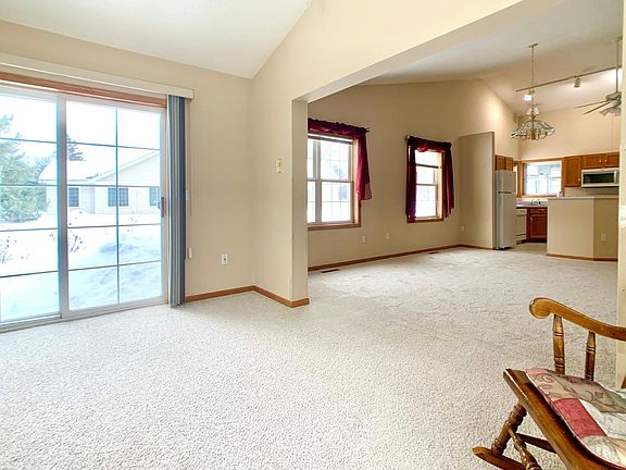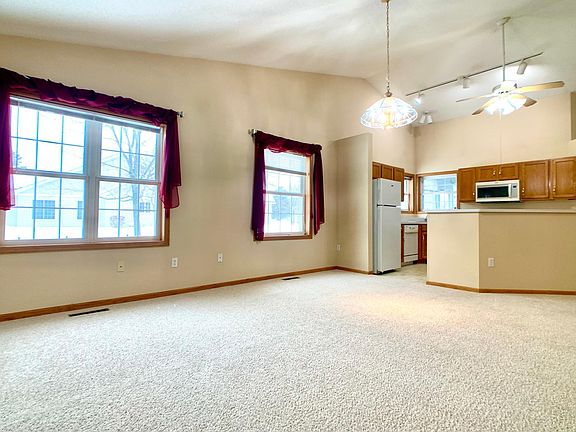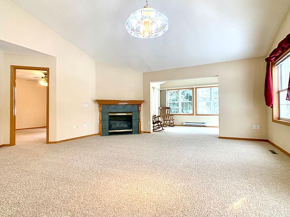 Enjoy one-level living in this 2-bedroom/2-bath townhome. End unit with open layout, gas fireplace, and sun room that walks out to a concrete patio. South-facing driveway. Kitchen with center island and gas range. Large primary bedroom with private 3/4 bath and walk-in closet. 2-car heated garage and screened-in porch. Updates include furnace (2017) and water heater (2014). Association replaced the roof in 2014. Brand new carpet throughout and new vanity cabinet in full bath. Next to overflow parking. Quick close possible.