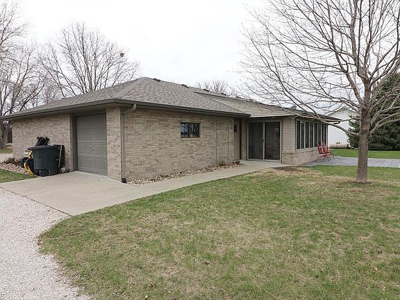 Looking for a low maintenance home? This attractive brick ranch is a beautiful space to call your own. Features include spacious bright kitchen with quartz counters, 3 season room with new outside patio area, warm fireplace and new flooring in the living and dining space, plus main floor laundry. Large lot near the edge of town with two separate driveways. 3rd garage stall is perfect for that golf cart, ATV or workshop. Geothermal heat pump system keeps the inside temperatures perfect and the utility bills low.