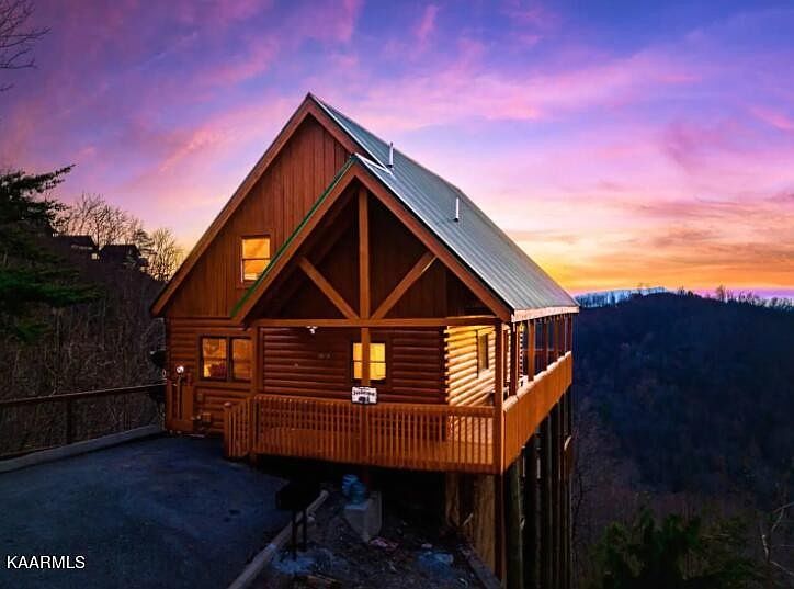 Enjoy panoramic views, Breathtaking Sunsets & Fireworks in the Summer!!! Wonderful location with $125k rental revenue form 2021 could make this a great asset to your portfolio!!! This stunning 4 Bedroom/3 Bath true log cabin sits on a hill top above Dollywood in Eagle Crest Resort - an established cabin community with a brand new in-ground pool for guests. Just minutes from Dollywood and all the attractions of Pigeon Forge, this is convenient and close-to-town. Solitude, unobstructed mountain views, and amazing sunsets are the sought-after features of this upscale rental cabin. Cabin boasts of a complete wall of windows in great room to take in the majestic mountain view--access to wrap around covered porch with rocking chairs and hot tub.