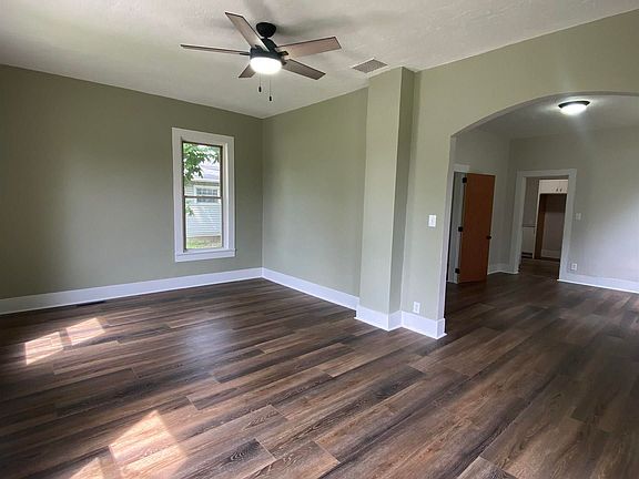 Back on the Market - no fault of sellers. 1900s UPDATED! Three bedrooms, one full bathroom, 1400 square foot home on TWO parcels almost half an acre. City water/sewer, gas forced air heat. ALL new vinyl plank flooring in the large 20'x15' high ceiling living room, arch way to family room/dining room 12'x10', EAT-IN kitchen 15'x12' - new countertops, backsplash, cabinets - appliance concession available. Bedroom 1 MAIN floor could be den/office. LARGE bedroom 2 and 3 on UPPER level - brand new carpet, handrails, banister. UPDATED full bathroom - new toilets, vanity, shower valve. Freshly painted throughout, new interior doors, outlets, switches, light fixtures, ceiling fans, floor vents. Newer siding, gutters, fascia, and some window trims. OUTDOOR deck refaced. Concrete pad for parking, shed, +additional parking as needed (including RV, camper...)