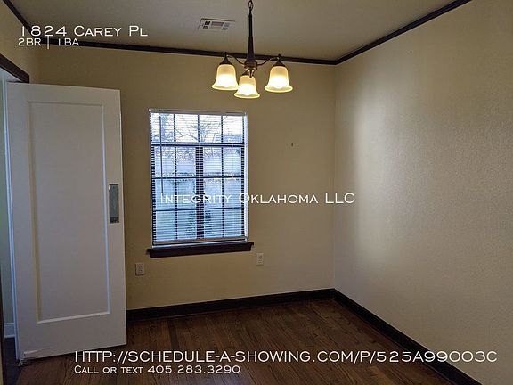 Immaculate 2 bed 1 bath duplex. This home has historic charm and is very close to the plaza and paseo districts. One car garage available for lease for an additional $50 per month. Owner pays water and trash tenant pays electric and gas. To set up a showing just visit Integrityokc.com