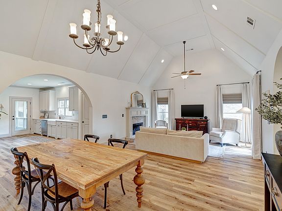 This gorgeous 3 BR/3 BA full brick home is waiting just for you & within walking distance to many great restaurants! Enjoy the freshly painted interior using on trend designer colors w/beautiful cathedral ceilings, accent moulding, new LVT hardwood floors, a gas FP and tiled porches are just a few examples of the love given to this home. Also featured in the two car garage is an in-ground storm shelter, fresh landscaping with an upgraded WIFI sprinkler system, new lighting fixtures, and insulated garage door along with a custom garage floor. There are 3 full BA/s complete with ceramic surround and a water efficient commode. The new designer kitchen includes the newest 2024 color pallette in the quartz countertops & backsplash. Features newer stainless appliances, painted cabinetry w/new hardware. Sit on the covered screened patio that is located off the Kit & overlooks the fenced backyard. Newer roof & water heater. Check out the community pool & clubhouse. This house is a MUST SEE!