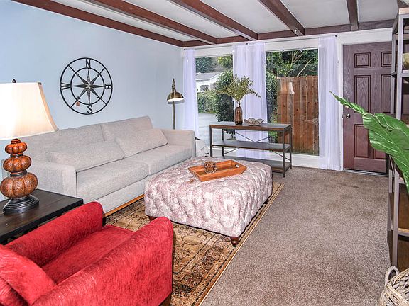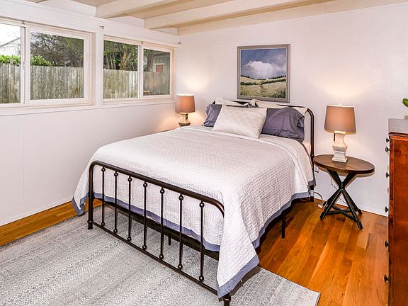 A charming mid-century home with an open floor plan, large windows, wood beams, and a private yard on quiet Circle drive! The home has been upgraded with dual-pane vinyl windows and a recent bathroom remodel. The master bedroom features gorgeous wood floors. Don't miss this one!