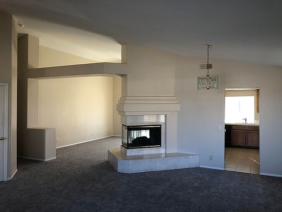 Beautiful 3 Bedroom, 2 Bath Home, with a Great floor plan. Move-in ready, with new carpet. Attractive 3 sided gas fireplace, centrally located between Living room and Family room. Open Kitchen with Gorgeous Custom Cabinets, Breakfast Bar, Garden Window, New Stove, and tile flooring. Master Bedroom features French Door entry, sliding glass door to back patio, Lg walk-in closet, dual sinks, and garden tub. Laundry room conveniently located between living areas and garage.