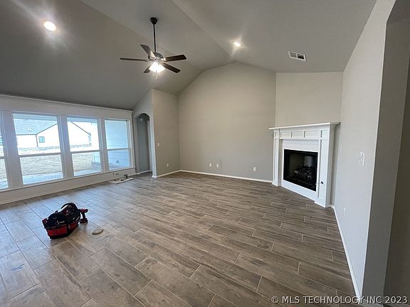 New construction home Newport plan with open Great Rm/Kitchen/Nook. Quartz counters & island in Kitchen with large walk-in pantry, built-in stainless steel appliances. 12' cathedral ceiling in Great Room with 4 large windows and lots of natural lighting. Private Master Suite with very little wall space connected to the public space of the home for peace and quiet. 5' mud bench coming in from garage with nooks, hooks, shelf space. Laundry entry from Mstr. Bedroom closet. 3 extra closets: front bath with linen closet, closet just outside of the Laundry Room, 5 shelf closet outside of the hall bath. Tankless water heater.
