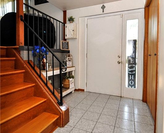 Welcome to this beautifully updated 3-bedroom split-level home located on a quiet street that ends in a wooded backdrop. The open layout features a thoughtfully designed kitchen with abundant white cabinetry and stainless-steel appliances, flowing into a dining room with cathedral ceilings and exposed beams. The living room showcases hardwood floors and a large picture window that fills the space with natural light. Upstairs, you’ll find three bedrooms with hardwood floors, including a primary bedroom with an attached half bath, as well as an updated full bath located in the hall off the three bedrooms. The lower level offers a cozy family room with fireplace, a second half bath, and a laundry area. A bright four-season room with a wood-plank ceiling opens directly to the backyard, creating an easy flow for everyday living and entertaining. Outdoor living is enhanced with new retaining walls, a patio, and spacious front and back yards.