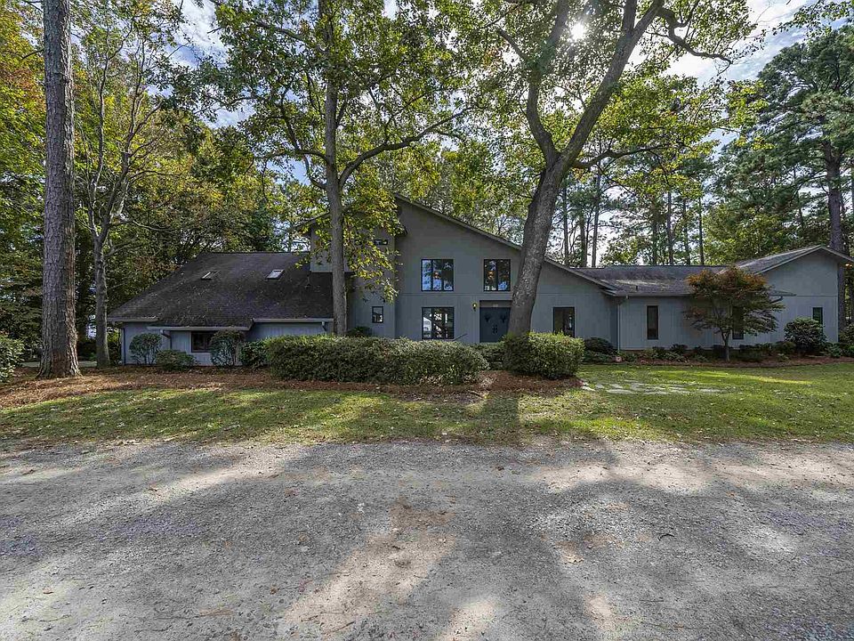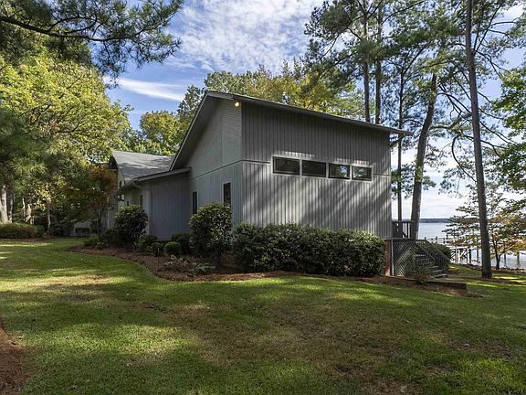 REDUCED, SELLERS ARE MOTIVATED. Beautiful contemporary home on Shull Island w/lake views from every room, open floor plan. Great house for entertaining, screen porch with outdoor kitchen and fire pit overlooking gorgeous water views. Large sunken GR has vaulted ceilings, gas stone fireplace w/remote. Stunning Master Suite on main floor with MB having large shower, garden tub, double sinks. Exercise room in FROG. Large pantry & laundry room. Offices on main floor to be converted to bedrooms with addition of closets. High quality materials, workmanship, carpet & tile throughout. Landscaped lawn, drive-through boat house w/ storage, winch & overhead door allowing 3rd car parking. Private & wooded. Water filtration system, Trex-like walkway & dock, boat lift, swimming dock lift, geothermal heating and A/C, top-end 22kw generator supplies immediate power to whole house. Crawl space is sealed & is temperature & humidity controlled, as is storage/hurricane bunker. Geothermal based H&A in approx. 80% of living area, w/3 zone a/c in living area. Garage has separate a/c unit; water purification and softening system. Security system employing glass breaks, motion and entry sensors throughout main floor. Boat hoist & boat dock lift out of water protecting structures from storm waves. 5130 sq ft under roof, including screened porch and garage. New Roof in May 2020, new windows in Great Room, all duct work has been replaced.