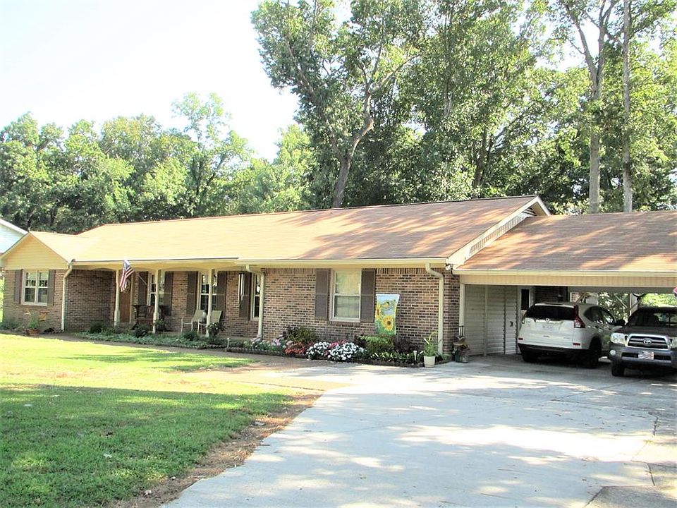 Nice one level brick on large shady lot - foyer opens to large formal living area and formal dining room, LR is currently being used as dining room and DR as home office space. Huge den with masonry fireplace, eating area, kitchen and large walk in utility room, sunroom off the back opens to oversize deck. Large master bedroom, master bath has been updated with custom walk in tile shower, two additional bedrooms and full bath. 2 car garage currently used as workshop with overhead door in place for easy conversion, two car carport and concrete drive, pull down stairs for good overhead storage, back deck and sunroom have storage underneath plus good outbuilding. Parklike setting with easy access to I-40, just minutes to Center Hill Lake and other outdoor recreation, 4.5 m to CRMC.