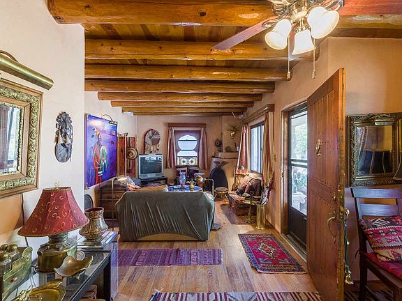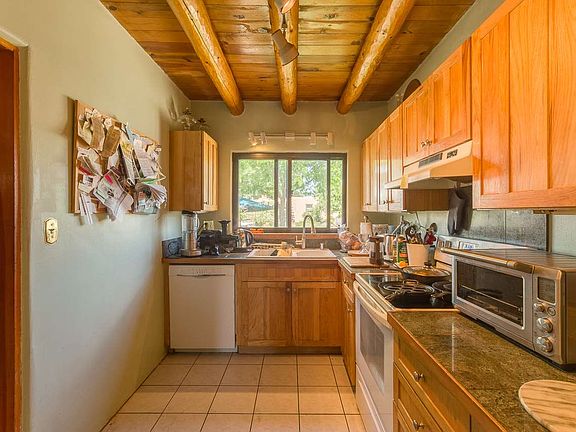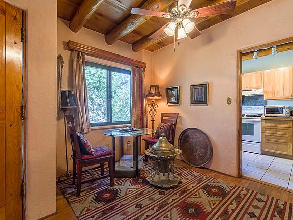 Sweet and super cute Stamm home, 1200 +/- sqft, 3 beds/ 1 ¾ bath Casa Alegre home with vigas throughout even in the full bathroom. Sited on a .17 acre lot. Wonderful amenities/features include: Double pane windows-Ceiling fans-Wood floors-Mud room-Washer/dryer-Covered front and rear porches-2 sheds- Large landscaped backyard-Lovely low maintenance front yard with mature trees-Newer fridge/stove-Redone kiva wood burning fireplace in living room-Newer roof/stucco and newer floor furnace (2014). Third bedroom has separate entrance perfect for studio/teenager/mother in law or possible rental potential, large closet and ¾ bath. Kitchen has been remodeled with tile floors and granite tile counters. Tons of parking. This is a must see!!!
