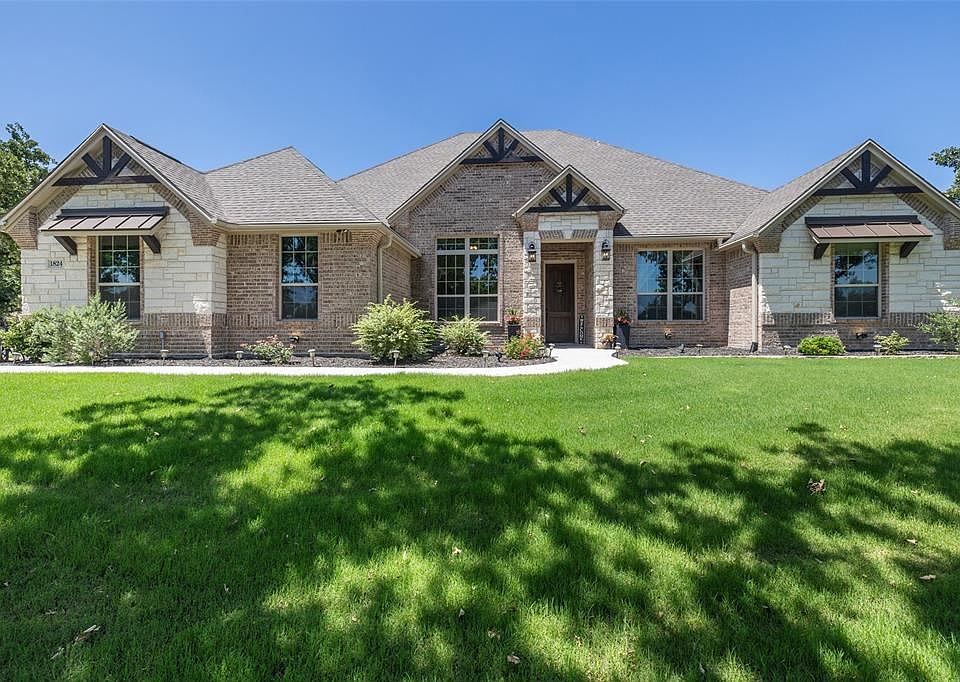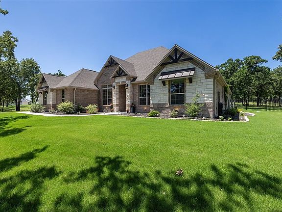 Built in 2021, this beautiful 4-bed, 3-bath home occupies 2.54 acres. Inside, discover versatile spaces: an office, den, and bonus room, all orbiting a open kitchen with a generous granite island, perfect for gatherings. Essential amenities like water filtration, septic, and a well are present. The backyard is encased in a wrought iron fence. Furthermore, a 30'x55' insulated workshop with a loft, furnished with an electric lift and spiral staircase, offers multifunctional potential"as a multifamily area, a retreat, or storage space. Climate control is assured by a mini-split system, with plumbing in place. Outside, find two lean-tos, LED illumination, and a landscaped retaining wall framed by mature oak trees. Jellyfish lighting enhances the home's beauty, while a Hydra Wise sprinkler system and leaf guard gutters simplify upkeep. The brick and stone exterior add to its elegance and resilience.