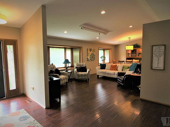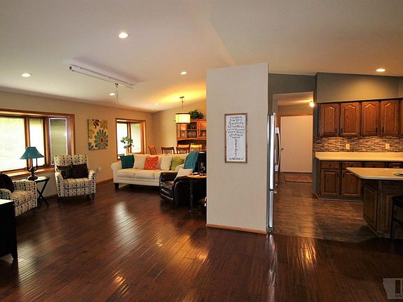 Priced to sell - this updated ranch offers an open floor plan with many upgrades. Step into the foyer and enjoy a view of the living room, kitchen and family/eating area with fireplace. There are vaulted ceilings, wood floors and stone fireplace. The custom kitchen offers solid surface counters, stainless steel appliances and tile backs plash. The formal dining area is off the living room. The two car garage is accessed from the mudroom/laundry area. The garage has an extra stairway to the basement. There is a .5 bath off the mud room. There is an inviting 3 seasons room and deck to enjoy the private back yard landscaped with many perennials and plantings. From the living area you can go down the hall to a full bathroom, two large bedrooms, and a huge master suite with garden facing windows, walk through closet and full bathroom with separate whirlpool tub and shower. There is a family room (concrete floor) and 3/4 bath in the lower level. There is also a den and large storage/utility room. Midwest Basement Systems Inc has installed water proofing and bracing in the basement (transferable warranty). More information in agent notes. There are so many updates - make your appointment to see them today!