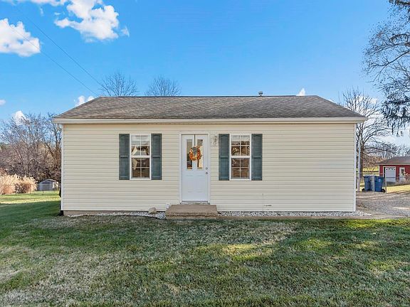 Beautifully updated two-bedroom single story home on a third-of-an-acre backing to a small grove of trees. Enter and enjoy the large dining area that offers flex area for a small office space. The kitchen is sunny, sports white cabinets, and the electric range stays. Off the kitchen is a generous utility room which includes the washer and electric dryer and additional capacity for storage. An arched doorway leads to the comfortable living room which has sliders leading to the newer, expansive deck. Great for entertaining or savoring the view. Accommodating primary bedroom is bright with larger closet. Updated bathroom. Handy one car garage with electric. Both yard barns stay. Gray barn is 8x8 and the Cardinal barn is 12x10 with loft. Offering additional storage as well. Neutral decor throughout and move-in ready. Fencing has dual access areas. Just outside of town and within minutes to Triad schools and I-55. Say 'yes' to this adorable address!