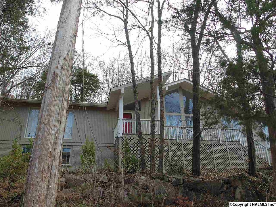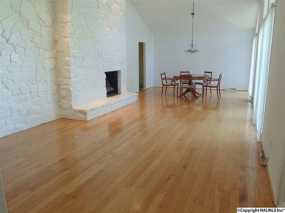 Wonderful contemporary house! Very large living room/dining room combination with a vaulted ceiling and a grand stone fireplace. Family room also has a vaulted ceiling and soaring stone fireplace. Master bedroom is very large! Private treed back yard with a sunroom/breakfast room where you can sit and enjoy nature. House does need updates so you can put your own touch in it! Located very close to Huntsville Hospital in the desirable Blossomwood area. Sold As-Is. Seller will not make any repairs.