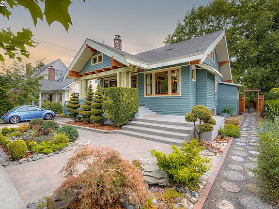 Tastefully updated Portland Bungalow seamlessly blends vintage charm with modern amenities featuring historical light fixtures, leaded glass, restored woodwork & built-ins throughout each level! Some updates include the Fir cabinetry & spacious granite countertops in the chef's kitchen, HVAC, sewer, plumbing, electrical, primary bedroom with ample closet space, & full basement including wet bar, surround sound & private exterior entry. Gracefully sized backyard with patio & space for gardening! [Home Energy Score = 4. HES Report at https://rpt.greenbuildingregistry.com/hes/OR10204216]