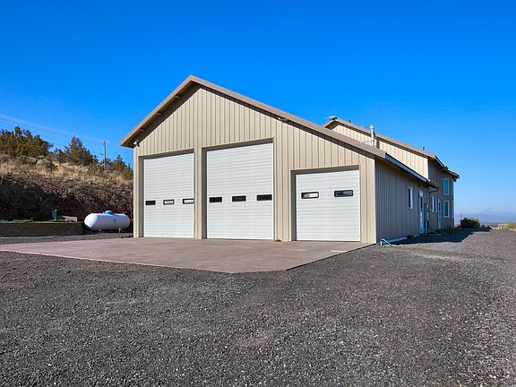 Unlimited possibilities await you at this property! Built as a pole barn w/living quarters the home was designed to take full advantage of the views while incorporating a garage mahal! The main floor features the kitchen w/propane range w/hood, microwave, dishwasher, refrigerator & large pantry. The window over the kitchen sink is perfectly placed to take in Smith Rock! The large great room takes in all the views including Jefferson & is plumbed for a propane fireplace. Laundry room w/shower, toilet, 2 sinks, washer/dryer, solar tube and folding area. Upstairs is a large loft area (2nd bedroom) w/2 oversized storage rooms & full bath. So much potential to expand for your own needs. 10 zone In-floor radiant heating system, water coil system heated w/solar & propane on the main floor and garage--all zones are adjustable. Heated garage features 3 bays, 2-14 foot doors & 1-10 foot door. Garden areas w/water and power. Driveway surrounds the home for easy access and fire protection