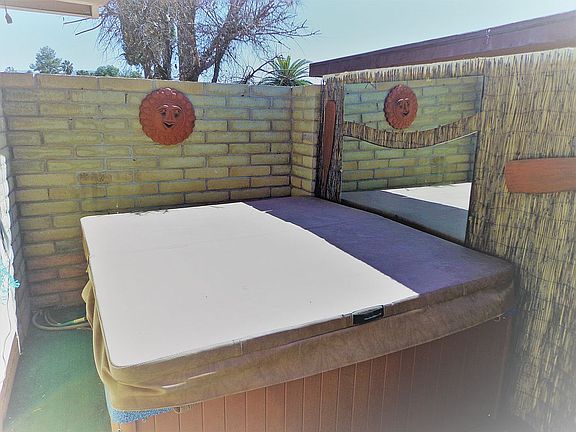 Rambler style family home in the desirable Rolling Hills neighborhood, with vaulted ceilings, skylights, and ceiling fans. 3 main living areas include 2-way fireplace and Arizona room with electric rolling shutters. Updated kitchen with quartz counters and stainless appliances. Large master bedroom with en-suite bath with Jacuzzi tub and shower. Private hot tub accessible from master bedroom. Swimming pool recently plastered with new pump system and solar heat. This charming home is in the Rolling Hills Golf Course community which includes a park with tennis and basketball courts. There are also playground picnic areas and walking paths. The Tucson loop River wash trail is nearby 2023-01-30
