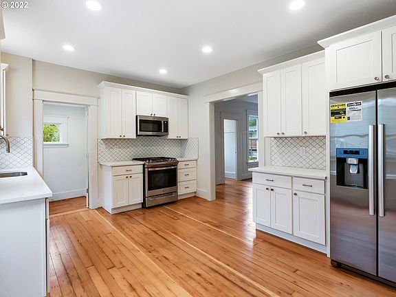 Exquisite 1911 craftsman bungalow in a prime location. This home has been immaculately updated with new kitchen, bathrooms, electrical, Hi efficiency furnace, plumbing, roof, sewer and much more. Walk to outstanding restaurants, parks and schools. Finish the full height basement for ADU potential or additional space, finish the insulated attic for even more space! Seller will convey plans to finish basement with sale. [Home Energy Score = 2. HES Report at https://rpt.greenbuildingregistry.com/hes/OR10206637]
