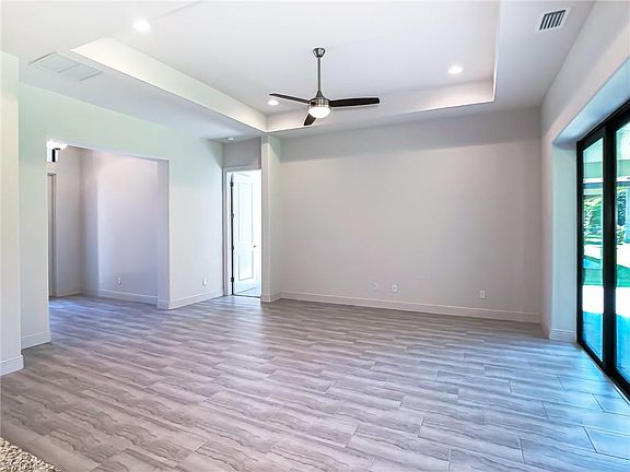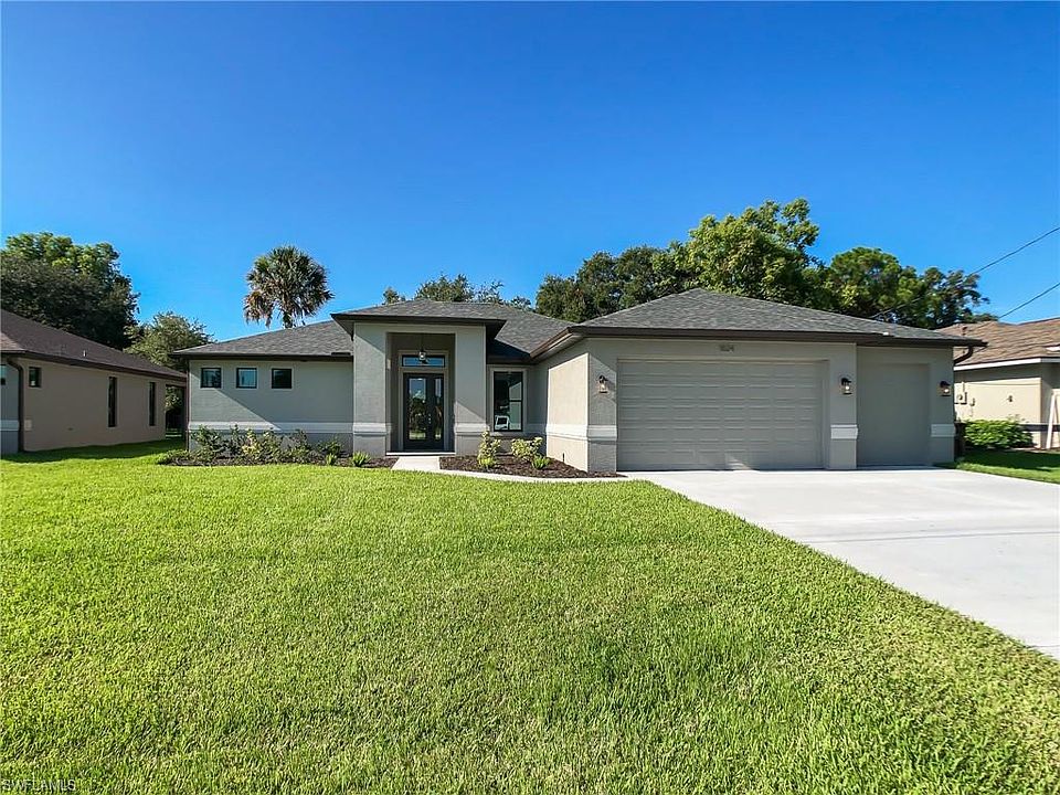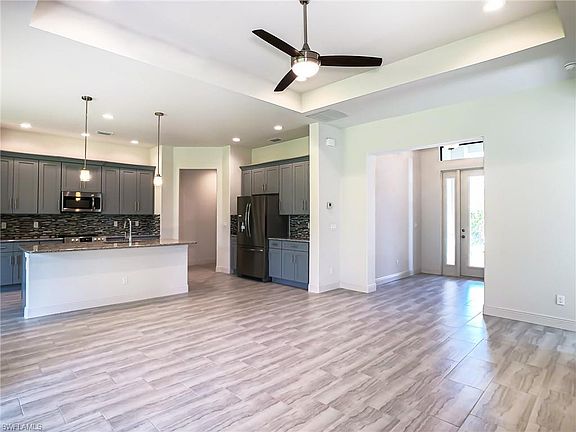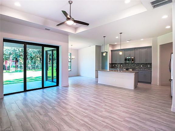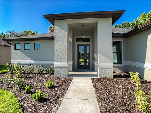 2019 NEW CONSTRUCTION 4/3 en-suite bath split-plan 3-car garage custom home. City water, sewer, irrigation, sprinkler system, Floratam sod. Great neighborhood near gated communities, schools, churches, shopping. Open design, clean contemporary look, gray tone colors. Impact glass on windows, sliders, front-entry door. High tray ceilings & 8' high doors & sliders. Stucco ceiling entry & lanai. Stunning wood-look rectangular porcelain floor tile, carpet in bedrooms. Wood window sills. Solid wood soft-close cabinets. Granite counters. Kitchen tile backsplash. Stainless kitchen & laundry sinks. Upgraded lighting & fans. Moen Align faucets with rain-shower heads in all baths. Large walk-in master shower with oversize rain-shower head and hand-held. His & hers walk-in closets. Stainless Frigidaire modern appliances, French door counter-depth fridge, slide-in range smooth cook-top, over-range microwave, front-load washer/dryer (white). Quickset locks with lever handles. Garage door opener w/ 2 remotes. Many more upgrades & decorator touches. Southern exposure, room for pool. Utilities assessment bal to be assumed by buyer.