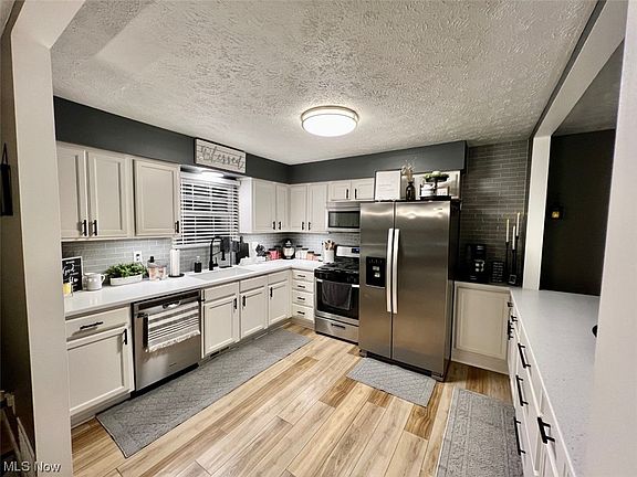 Welcome to this beautifully updated 3 bedroom home located in Perry Township close to Sippo Lake Park, schools, restaurants and shopping! This home features modern touches throughout with beautiful flooring, neutral paint and an open concept living space. Prepare your favorite meals with a newly remodeled kitchen with solid surface counters, stainless steel appliances and a large kitchen island for family and friends to gather around! A walkout patio, including new concrete and fire pit are great for hosting your summer activities! Upstairs there are 3 spacious bedrooms with a large family bathroom with a double vanity with plenty of storage. Other amenities like smart home features and security cameras around the exterior of the home are included. Landscaping and a large backyard with a shed for all of your outdoor tools and toys located in Perry Local School District! Come and see what this home has to offer!