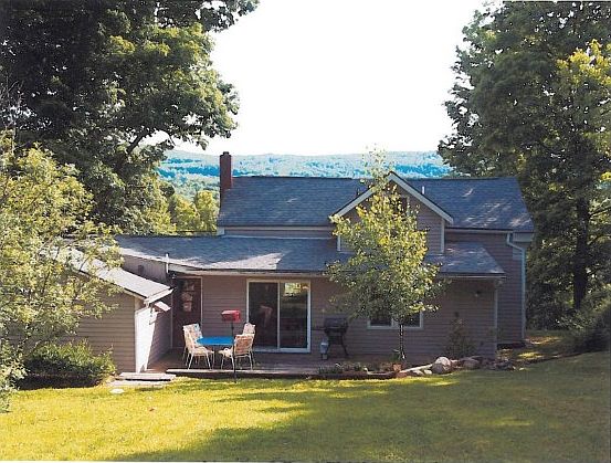 Overlooking the valley above Slaterville Road is a Greek Revival that exudes charm. Enter light filled eat-in kitchen with skylights, beams and wood floors. Wide plank floors in spacious living room, dining room and first floor master bedroom with very large attached bath. Two more bedrooms, plus spacious landing and bath on 2nd floor. Large yard, private deck, seasonal pond, playhouse, single car garage. Close to Cornell, IC and downtown.
