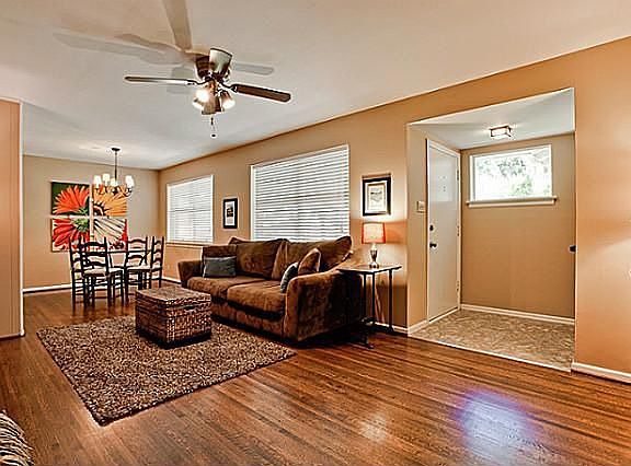 Terrific Updates in the 50's Ranch in a great neighborhood in E. Dallas. Flexible floorplan that allows for 4 bedrooms or a 2nd Living Area depending on your needs. Sellers have done a fantastic job of updating. It looks like it's pulled from the pages of Pottery Barn. Highlights include: Refinished Hardwoods-2011, Stainless Appliances, HVAC - 2011, H20 Heater - 2009, Carpet - 2010, Interior Paint - 2007 & More. Quiet neighborhood. Great Value.