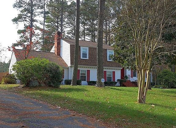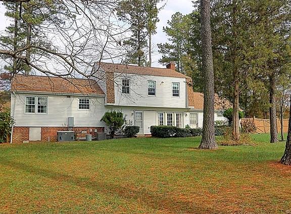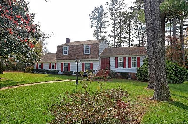 This lovely tri-level Dutch Colonial in the highly sought-after Camelot neighborhood offers four spacious bedrooms (three on upper level, one on lower level), three full bathrooms, new windows, new carpet, and new roof. Updated electrical system and full-service generator. Formal living and dining rooms with chandeliers, custom-made draperies. Roomy and bright updated eat-in kitchen with refrigerator, electric range, and vinyl flooring. Large den with carpet, brick fireplace, beamed ceiling leads to brick patio and fenced rear yard. Huge recreation room with carpet, built-in bookcase, cabinets. Utility room with washer, dryer, refrigerator, small freezer. Pull-down attic with new metal stairs. Two linen closets. All bedrooms, second-floor hallway fully carpeted. Security system. Two storage sheds in rear yard. Beautiful landscaping. Quiet, peaceful setting, located on nearly one acre - the largest lot in Camelot! Short drive to Historic Downtown Petersburg, Virginia State University, and Fort Lee. Close to Dogwood Trace Golf Course, schools, and shopping.
