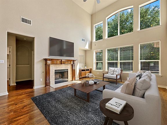 OPEN HOUSE - Saturday & Sunday - 1PM to 3PM. NEW INTERIOR PAINT - includes walls, ceilings, doors, trim, ledges & closets. Located in one of the most desirable neighborhoods in Leander, TX this well maintained home on a cul-de-sac lot in the Highlands at Crystal Falls offers all the amenities you could desire with walking distance to Winkley Elementary & Running Brushy Middle School. This immaculate home features 4 spacious bedrooms with master down, 3.5 bath, 3 livings with super high ceilings in main offering lots of natural light plus fireplace, formal dining, office, 30,000 gallon pool with spa, 3 car garage & much more! Kitchen features open floor-plan with island, breakfast bar, KitchenAid stainless steel appliances with refrigerator, gas cooktop, under-mounted sink, stone backsplash, pantry & recessed lighting. Gorgeous hardwood throughout first floor, hard tile in wet areas & carpet flooring in master & second level, wood faux blinds, water filtration & washer/dryer included. Covered back patio, 4 side stone/brick, large private backyard with mature oaks & more. Refinished front door, freshly painted garage doors and back door.