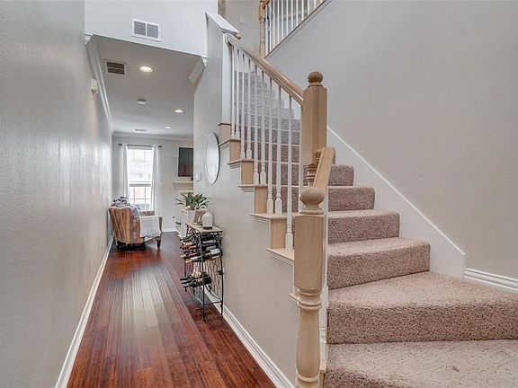 Heavily updated townhome in Plano ISD. Updates include new wood flooring throughout and brand new tile backspash in kitchen. 42inch cabinets, corian counters, breakfast bar, walk-in pantry, flat cooktop range and built in microwave. Master has crown molding, granite, double vanities, walk in closet, garden tub and separate shower. Other crown molding, gas log fireplace, cabinets in the utility room, student center upstairs, walk in closet in secondary bedroom, linen closet, wood fenced yard and patio, 2 car garage and more.