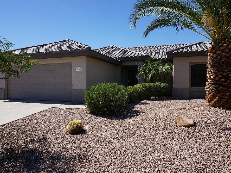This 1414 square foot single family home has 2 bedrooms and 1.75 bathrooms. This home is located at 18240 N Las Rocas Way, Surprise, AZ 85374.