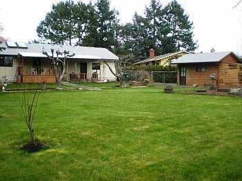 Complete info: http://daveandjeremy120.CheckOutMore.com - 27 Picture windows with view of gorgeous yard and landscaped paradise, kitchen with tile counters, built in desk, extra rooms, new paint inside and out, wainscoating, 3rd garage with shop and extra tool shed, 2 pear, peach and 2 apples trees, full garden with beds, new dishwasher, new stove vent, new electrical outlets, new 40 year roof, heat exchange in FP, tons of storage, almost 1/2 acre. Owner Contract Terms Available. Immaculate..