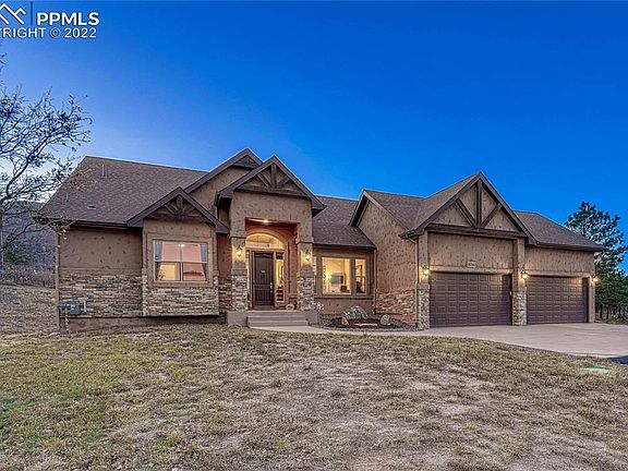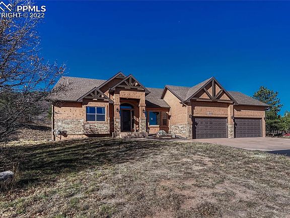 Welcome home to this gorgeous, custom-built masterpiece tucked away near the base of the mountains. Enjoy the peace and quiet on almost 2 acres of treed land while maintaining a bit of city views from afar. Attention to detail is apparent throughout this ranch home. Enter the home and you are immediately greeted by the spacious main level living area which opens up to the kitchen and dining room. The gourmet kitchen features beautiful granite countertops, stainless steel appliances to include a double oven (convection above and standard below), separate cook top, tons of cabinet storage, walk-in pantry, eat-in dining space with plenty of room, and breakfast bar for additional seating. Exit from the kitchen onto the private, covered deck complete with retractable sun shades - a perfect space for enjoying the summer evenings next to the fire. The primary bedroom is complete with a pass-through fireplace into the custom five piece bathroom and a huge closet! Also on the main level are a bright and spacious office near the entrance as well as a secondary bedroom with en suite bathroom attached. The main level laundry/mudroom make for true main level living! Head downstairs to the massive, garden-level family room/entertainment area complete with a wet bar! Down here you will also find another bedroom with en suite bathroom, two more bedrooms, another full bathroom, and tons of storage space in the unfinished mechanical room. Outside on the 1.76 acre lot, you will find a hot tub off the back of the house, volleyball court, tons of space to park your toys, and all the privacy you could imagine. The double wide driveway is east facing so gets plenty of sun exposure in those snowy winter months. The four car garage has room for extra toys and features tall ceilings for extra storage. Additional features of this home include central vac, radon mitigation system, dual water heaters, whole house attic fan, and class 4 impact resistant shingles. Come see this beauty today!