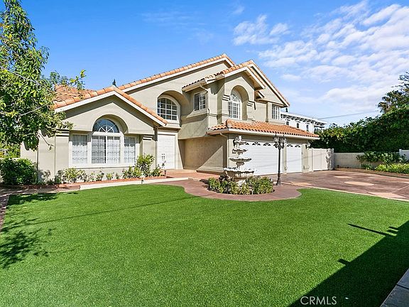 Modern comfort meets timeless charm in this gorgeous Villa Park Estate. Built in 1990, this home has a more modern floor plan than your typical Villa Park home. Upon entry, one is immediately engaged by the soaring ceilings, open concept floor plan, and ample natural light. Dining and Living room are designed in an open concept with cathedral ceilings, oversized windows, cozy fireplace w/mantle, and chandelier. Entry showcases wrap around staircase, spacious landing, and wood banister. The kitchen is freshly painted light and bright, with dark granite counters, 4 top gas burners, spacious island, oversized pantry, stone floors, and beautiful kitchen nook with views of the back yard. The family room is spacious and perfectly located with views of the backyard, easy access to kitchen, and framed with a beautiful brick finished fireplace. Also in the family room is a spacious wet bar with serving counter that is perfect for entertaining. In addition to the 2 spacious upstairs bedrooms with en-suite bath, there is a ground level bedroom with en-suite, perfect for multi-generational living, secondary master or spacious home office. Master bedroom is HUGE with attached full sized retreat that opens to a private balcony for you to decompress on after a long day. Master shower has large soaking tub, walk in shower, separate vanities w/ beauty station, walk in closest, and private water closet. Upstairs you will find all secondary bedrooms, and a MASSIVE bonus room. The back yard is an entertainers dream with a expansive covered patio, spacious hardscape for plenty of guests, immaculately maintained rose gardens, numerous specimen fruit trees, and more. Other features include gated front entry with automatic openers, artificial turf for drought tolerant landscape, entry fountain, RV access options, modern floor plan and layout, recessed lighting, spacious secondary bedrooms, three car garage, fresh paint, 5 bed / 4 bath, and more. Walking distance to VP Schools, VP shopping center, and quick access to all of Orange Counties main freeways.