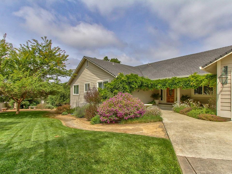 Welcome home to a Country Estate on a private lane inside the gates of Berta Meadows. Sprawling over 3300sqft on a single level with 4 beds/2.5 baths, 3 car garage and other parking on a 2.29 Acres. Formal Entry and Dining room, Huge Great room with Vaulted Knotty Pine ceiling, recessed lighting, elegant fireplace & mantle between 3 sets of french doors to the deck with stair access to the useable yard below. Open concept kitchen designed for entertaining, take a seat at the roomy bar watching the chef at island cooktop, expansive granite counter space, cabinetry, large pantry. Oversized Master Suite w/ high ceilings, 4 French doors; huge Master Bathroom w/marble floors & counters, walk in closet, closet w/ mirrored doors in dressing area, 3rd closet near the separate shower & soaking tub. Manicured grounds & green yards bordered w/ White Birch, Japanese Maple & mighty Oak Trees. HOA fee: $50.00 mos. Close to shopping, dining, banking & transportation. EASY access to Hwy 101 & Hwy 1