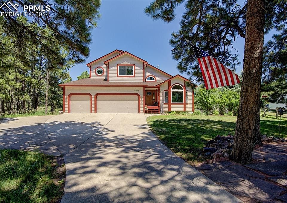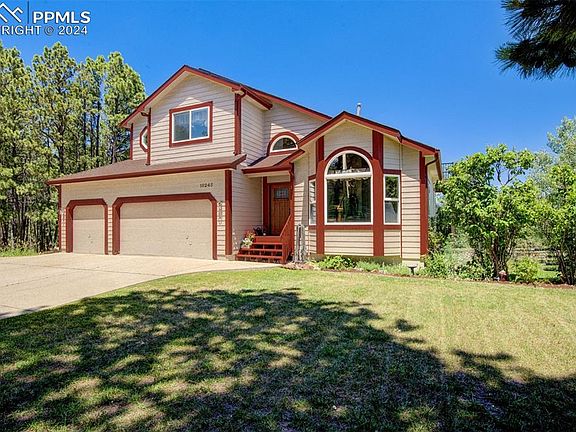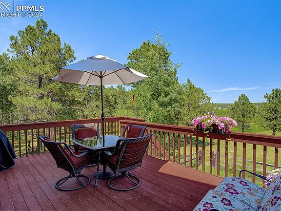This spacious home in the Black Forest is what living in Colorado is all about! The gentle evening breezes in the tall pine trees whisper a soothing sonnet creating an atmosphere of relaxation and a feeling of being one with nature. Located on an acre plus lot at the end of a cul-de-sac the property offers privacy, beautiful views, a fenced garden, multiple decks & patios, solid wood 6 panel doors, granite counter tops, a 3 car garage, walk-out basement, vaulted ceilings, large rooms, a covered front entry, exterior paint in 2020, new roof in 2020, & newer TREX type deck on the Primary Bedroom deck in 2021. The property is centrally located between Colorado Springs and Denver for an easy commute north or south. The current homeowner bought this home new in 1990 and created a 600 sq. foot garden. The garden's location provides ample sunshine and enriched soil producing delicious yields of beans, squash, corn, lettuce, cabbage, potatoes carrots and tomatoes.