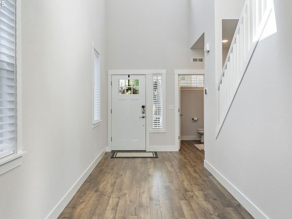 Welcome to this modern and beautiful, light-filled 3-bedroom, 2.1-bathroom home located on a premium lot on a quiet dead-end street at Lolich Farms. Greet your neighbors from the inviting front porch before stepping inside to a stunning two-story foyer, where large windows flood the entry and staircase with natural light. The floorplan is open and spacious, and the dramatic fireplace anchors the living room while the gourmet kitchen boasts an expansive island - perfect for both entertaining and everyday living. The main level extends to a private fenced backyard that backs to an expansive greenspace with nearby community trails, offering a serene and natural setting. The generous primary suite showcases tranquil nature views and a spa-inspired bathroom featuring an oversized tile shower, soaking tub, and two walk-in closets. Reduce your carbon footprint with its solar panels while lowering your electric bills. Minutes from the Cooper Mountain Nature Park, Murrayhill Marketplace, Progress Ridge Townsquare, fine dining, top rated grocery options and a short drive to Oregon’s famous wine country.