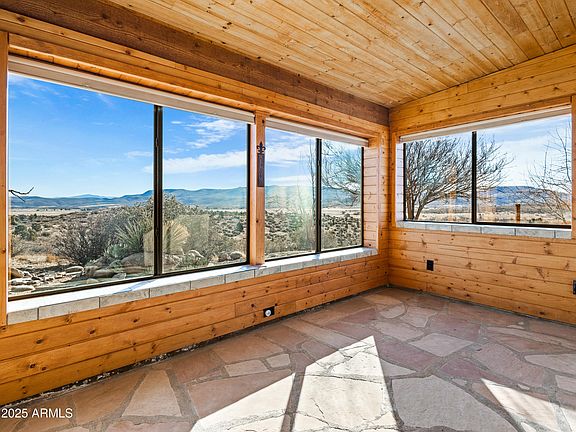 CUSTOM HOME w/ PANORAMIC VIEWS and 40 x 24 WORKSHOP in PEEPLES VALLEY, AZ. Over an acre of land w/ trees & mature, natural landscape. A/C just 4 years new! Split floorplan w/ spacious rooms. Kitchen opens to great room. Owner's suite has dual sinks, m/u vanity & a walk-in shower. Beautiful AZ room w/ flagstone floor provides a warm & peaceful area to relax for indoor / outdoor livin'. You'll be surprised with such huge views, the backyard still feels like a private retreat. Small fenced area for dog run or garden. This property has both an oversized 780 sq ft attached garage AND detached 960 sq ft workshop. There is both space & storage for days. NO HOA! Bring the toys! Driveway is concrete w/ easy access from a paved road. Fridge and W/D all convey. *CLICK MORE for Addt'l Info* Peeples Valley has 4 mild seasons, blue skies and fresh mountain air. Just 35 minutes from Wickenburg, 50 minutes from Prescott and 1.5 hours from Phoenix, you can enjoy a peaceful retreat yet still be close to amenities and conveniences.