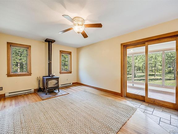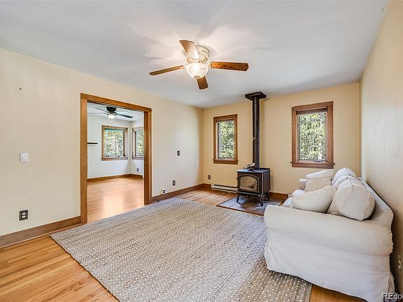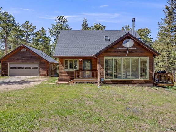 Nestled among towering pines with breathtaking mountain views, this inviting 3-bedroom, 2-bath Lyons retreat offers the perfect blend of rustic charm and modern comfort. Set back from the highway on a serene wooded lot, the home features a classic cabin-style exterior, large sunroom, and spacious deck—ideal for relaxing or entertaining in the fresh mountain air. Inside, warm wood finishes, abundant natural light, and clean, functional design create a cozy, welcoming ambiance. The kitchen offers plenty of cabinetry and counter space, with 3-year-new appliances and direct access to both the laundry area and dining zone. Both bathrooms have been tastefully updated—one showcasing a beautifully tiled walk-in shower with pebble floor detail. Generously sized bedrooms provide peaceful forest views, and the flexible floorplan allows for easy everyday living or guest accommodations. Practical updates include a new radon mitigation system and new roofs on both the house and the detached 2-car garage, all completed in 2021. The oversized garage is a standout, boasting skylights, workshop space, and ample storage—perfect for tools, gear, or hobbies. Multiple outdoor seating areas and a fenced yard enhance the usability of the lot, making it easy to enjoy all that this mountain setting offers. Located nearby downtown Lyons and a short scenic drive to Estes Park or Boulder, this home offers quick access to hiking trails, fishing spots, and Rocky Mountain National Park. Whether you're seeking a peaceful full-time residence or a weekend getaway, this special property is a must-see.