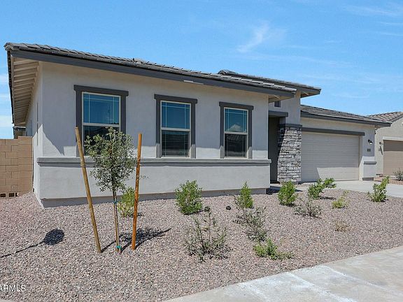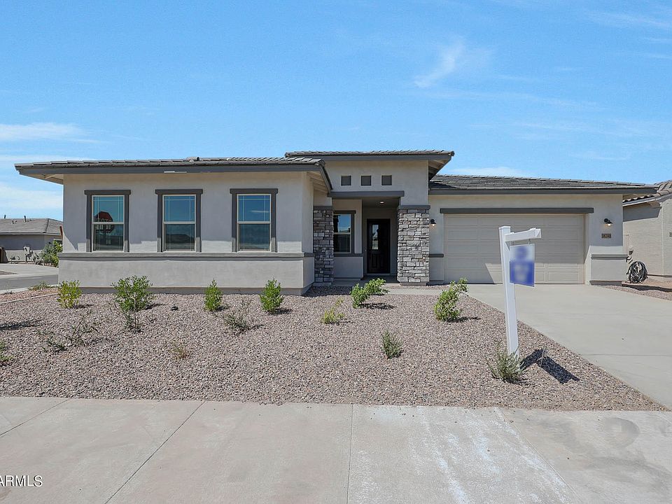 This beautiful home is move-in ready at Azure Canyon. Prairie exterior elevation. With 3,430 square feet of living space, you'll find 4 bedrooms, 3.5 baths and a 3-car tandem garage. There's also a centrally located retreat among the secondary bedrooms with a private courtyard. This home features an upgraded gourmet kitchen with White Shaker cabinets complimented with white/gray quartz countertops and stainless steel appliances including a single wall oven, built-in microwave, cooktop, decorative hood and dishwasher. The owner's suite provides a private bath with tiled shower and walk-in closet. Faux wood plank tile in all the right places! Home warranty included.