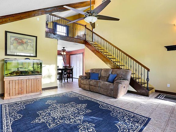Click on the link above to view the cinematic tour! Come see this charming two story home, located in San Carlos Park! Just minutes from Gulf Coast Town Center and Southwest Florida International Airport, this 3 bedroom, 2 bathroom home offers a little something for everyone. Some of the many key features include the NEW roof and gutters, new impact windows with lifetime warranty, new septic system, new well pump, new A/C unit, high vaulted ceilings and plenty of natural lighting. The spacious living room provides ample room to entertain, custom wrought iron railing on the staircase, and tile floors. The kitchen gives you a dining space with direct outdoor access, and boasts custom solid wood cabinets, granite counters and kitchen pro series stainless steel appliances. The master bedroom is conveniently located on the ground floor, with 2 more bedrooms and a loft space available upstairs. The generously sized backyard gives you room to play, and a shed complete with full power and running water as well! You don't want to miss this opportunity!