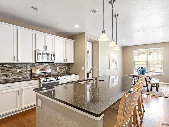 Nestled near the foothills between Golden and Boulder, this ranch-style home features an open floor plan, tons of natural light, and is loaded with upgrades. The open kitchen offers a large island, granite countertops, stainless steel appliances (including gas cooktop) and overlooks the large main living and dining areas. The master bedroom provides spacious sanctuary with lots of light that showcases the tray ceiling and gorgeous 5-piece bathroom with a massive walk-in closet. The main level also offers a generous-sized second bedroom, full bathroom, large office with french doors (easily converted into a 3rd bedroom), mud room and separate laundry room. Enjoy tranquil mornings and evenings on your covered front and back porches. The full, unfinished basement with high ceilings is pre-plumbed and ready for your own design to nearly double the finished square footage of this home. Enjoy the award-winning Leyden Rock community - clubhouse, community pool, & 17+ miles of hiking trails!