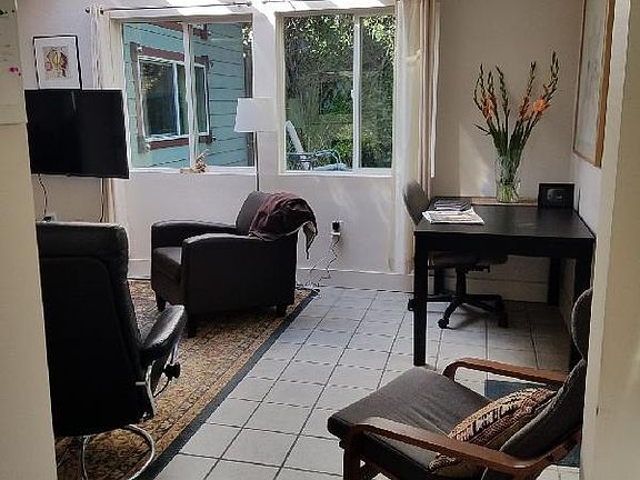 Sunny, safe getaway cottage near everything in Berkeley. One very large bedroom + office/bedroom. Eat-in kitchen, dining table. Fully furnished--kitchen, furniture, beds, linens. Large closets and good storage. Close to BART, UC Berk campus, restaurants, Trader Joes, pubs, farmers' market, parks, coffee shops, YMCA. TEMPORARY SUBLET ONLY between April 15 to Oct. 31 (5-month minimum). TEMPORARY SUBLET, between April 15 to October 31. 5-month minimum lease. OWNER PAYS ALL UTILITIES: gas. electricity, water, internet and cable.