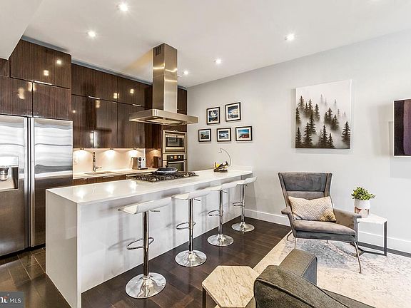 This expansive 2 bedroom 2 bath condo is part of a gorgeous 4-unit Victorian building originally built in 1885 and fully renovated in 2009. Located on a charming treelined stretch of 19th Street just blocks from historic Dupont Circle, which provides easy access to everything you need by foot or Metro. Upon entering the front door, you will immediately note the grand ceiling height, open floor plan and lots of natural light. The kitchen is sleek with stainless Bosch appliances, Caesarstone counters, ample cabinetry storage, a beautiful breakfast bar and separate dining area. The primary bedroom is bright and open with a lovely private balcony and stylish primary en-suite bathroom. There is also another bedroom offering oversized windows, a second full bathroom and washer & dryer in the unit.